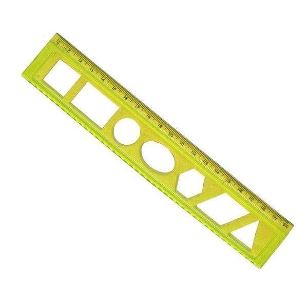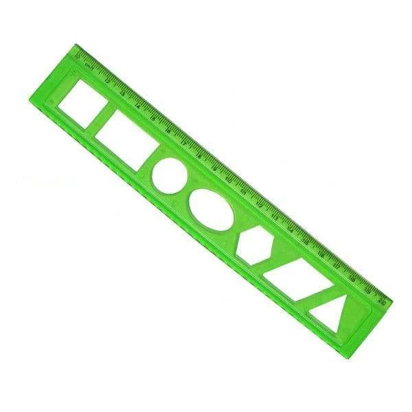 این خط کش در درون خود انواع شکل های هندسی پرکاربرد شامل لوزی، متوازی الاضلاع و سایر موارد را دارد که می توان این اشکال را به سادگی ترسیم نمود!!